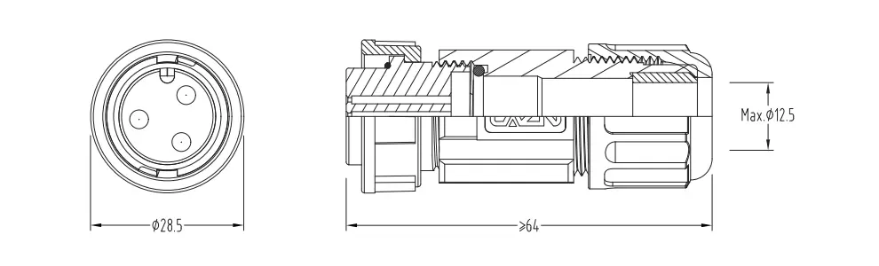 | Prise femelle droite installable sur site E16 (baïonnette) | 3 | E16B-S3-PWA12.5 | ||