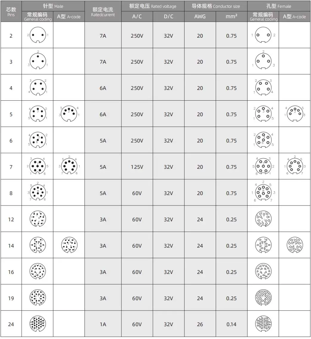 Connecteur standard européen série M16, Type de structure : Fiche coudée surmoulée Type de broche : Mâle Nombre de contacts : 2,3,4,5,6,7,8,12,14,16,19,24 broches Méthode de connexion : Soudure Blindage : Oui /AUCUNE Certification: CE,RoHS,UL,
