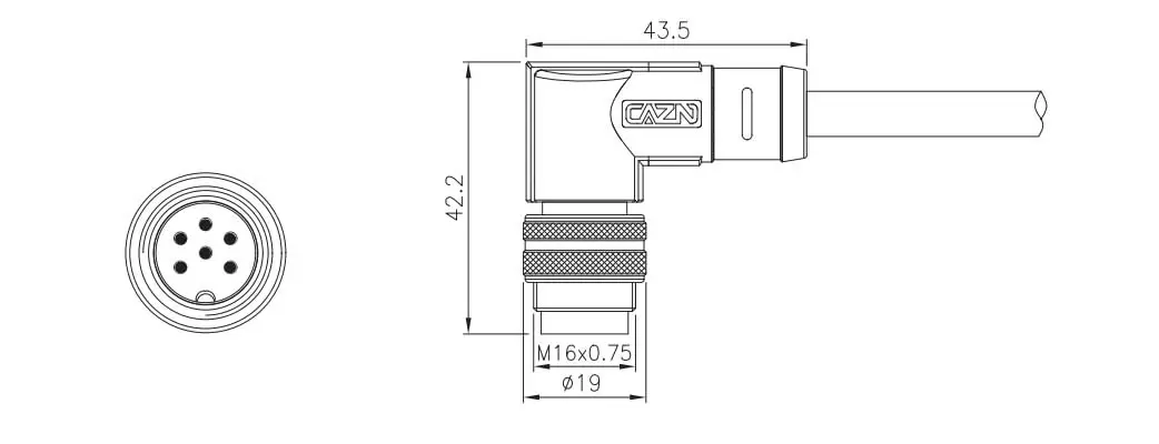 | Fiche mâle coudée M16 surmoulée-6 broches-xxM-PVC | M16-P6-MWD-xxPV-S | M16-P6-MWD-xxPV | 6 |