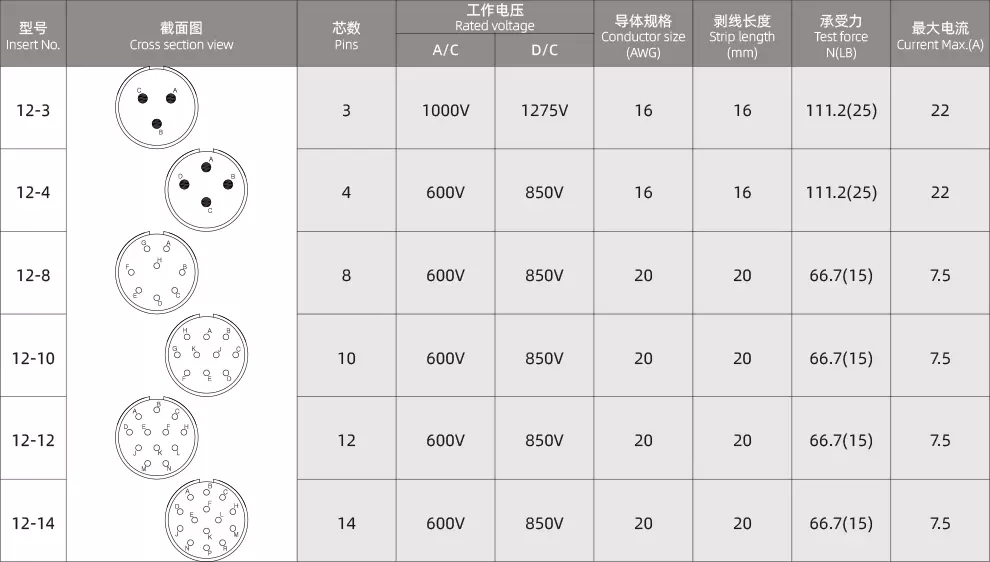 Série MIL-DTL-26482 I, Type : fiche 3116, Sexe : Femme, Mode de connexion : Soudure, Couplage : : Baïonnette, Broches : 4, 8, 10, 12, 14 broches, Conforme à la norme : MIL-DTL-26482, Certification : CE RoHS,
