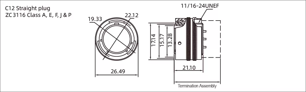 Prise droite | 12-12 | Contact à broche | ZC3116A12-12P | ||